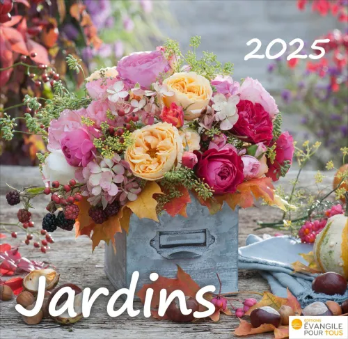 12 jolies photos de jardins en couleur, versets bibliques, cartes postales à découper. Avec spirale et support pour poser.